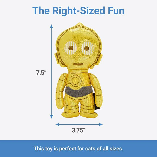 - STAR WARS C-3PO Plush Kicker Cat Toy with Catnip—Plush, kicker-style C-3PO toy is designed for cats who love to play a little rough with their toys.