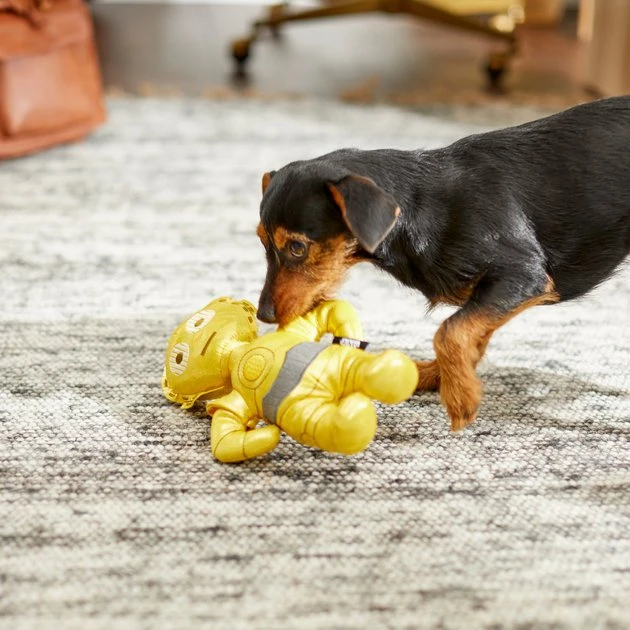 For a furry Star Wars™ fan, there’s no better buddy than the one, the only C-3PO™. This plushie protocol droid is available only at Chewy and designed for a dog’s all-around enjoyment, from naps to car rides and all the little fun things in between. He has a shiny cover just like the real 3PO’s polished gold finish to catch your dog’s eye. Inside, there’s lots of soft stuffing that’s oh-so-fluffy and two squeakers to keep your dog’s attention and for loud solo play sessions too. Whether your dog wants a companion to snuggle up with or a catchy, fetchy friend, C-3PO is definitely the droid for them!