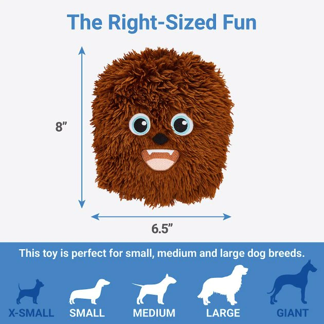 - Round Chewbacca plush toy is designed for every dog’s whim, whether it’s time to play or nap.