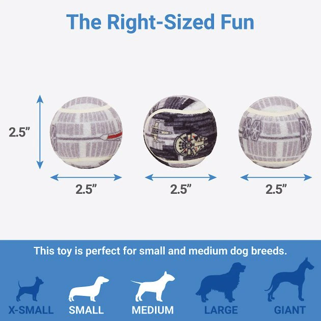 Give your Star Wars™ superfan’s legs a stretch with a game of fetch! Each of these classic tennis balls—a furry fan favorite—has a Death Star™ print featuring X-Wings, TIE Fighters and the Millennium Falcon™ too. They have built-in squeakers, so all you have to do is give one a squeeze to get your pup’s attention and then give it a toss. Your pup will zoom off across the galaxy to retrieve their new favorite fetch toy, available only at Chewy!