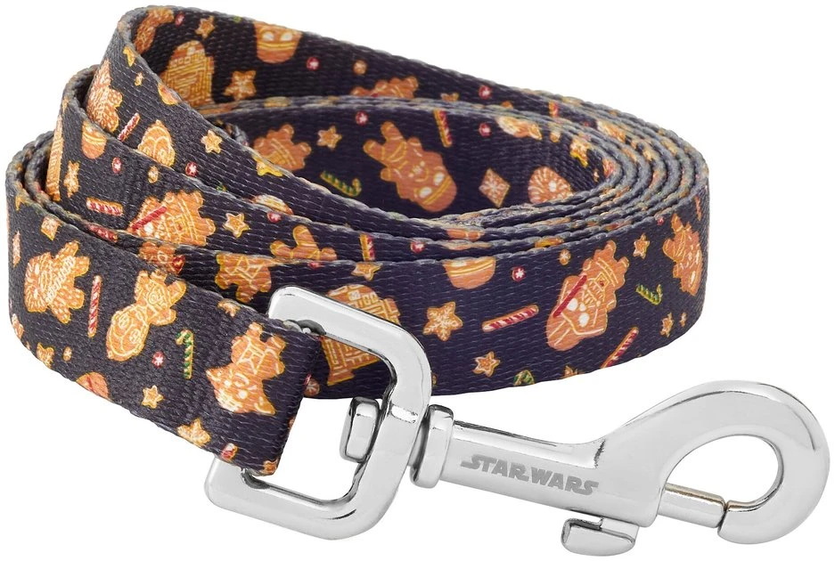 Celebrate the holiday season and your love for Star Wars™ with this sweet leash found only at Chewy! This adorable leash with a pattern featuring all your favorite characters as gingerbread cookies adds a touch of festive, fan-approved style to your furry friend’s everyday walks. It’s designed with polyester webbing for daily use, plus the easy-to-use, nickel-coated bolt snap securely attaches to any collar or harness to help keep your BFF close by. Grab the matching collar and harness to complete this Star Wars walkwear set, only at Chewy.