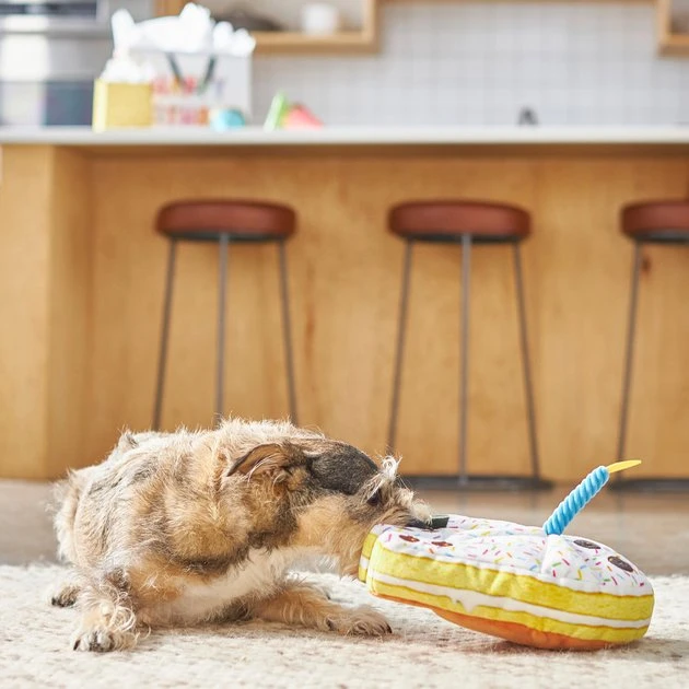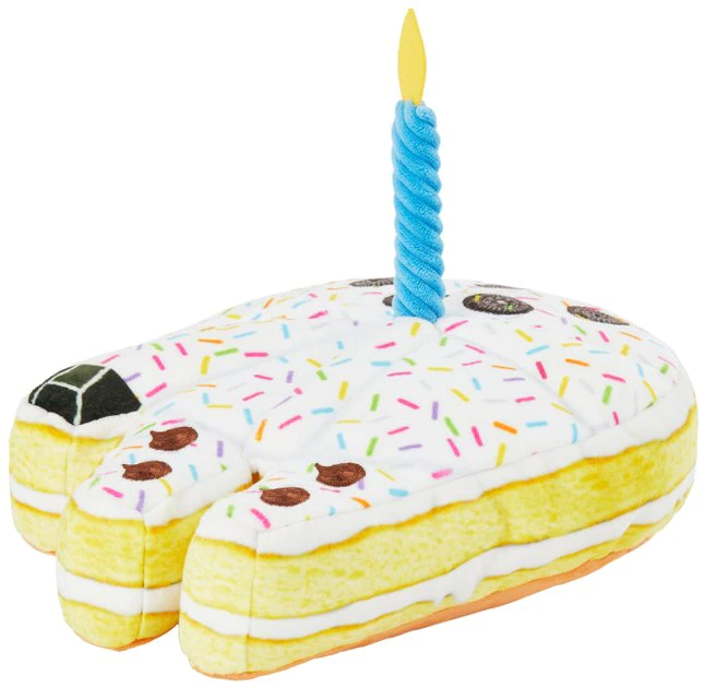 Playtime just got a whole lot sweeter with a Millennium Falcon⢠cake squeak toy just for your bestie. Let the legendary fun begin with all the squeaks and the sweets this side of the galaxy. Bring out this squeaky plushie for all your furballās favorite games, from fetch to interplanetary hide-and-squeak, and take playtime into hyperdrive any time. Made of soft Velboa and corduroy plush, this toy is perfect for playtime and naptime on any planet, too. Available only at Chewy.