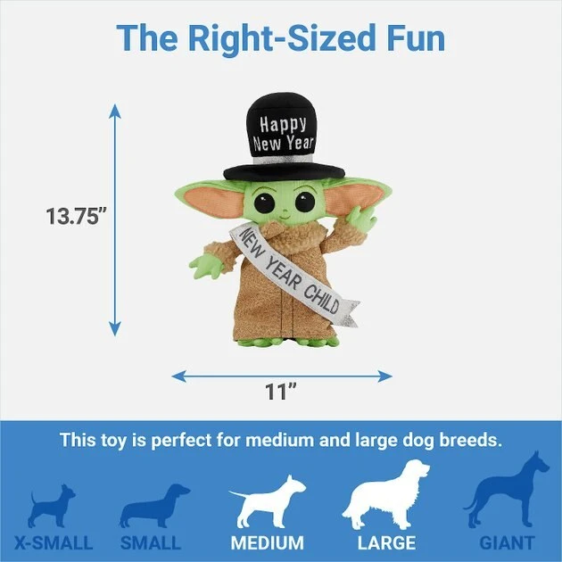 What better way to ring in the New Year than with a brand new toy for your Mando fan? The one and only Grogu™ (affectionately known as The Child) from Star Wars: The Mandalorian™ is here to join your pooch in all their playtime adventures! Perfect for solo play sessions or for interactive play if your pup is itching for some interstellar fun. Sewn-in squeakers, crinkle paper and dressed in the finest New Year’s party attire this side of the sun! Give your pooch the ultimate gift to keep them entertained no matter the time of year.