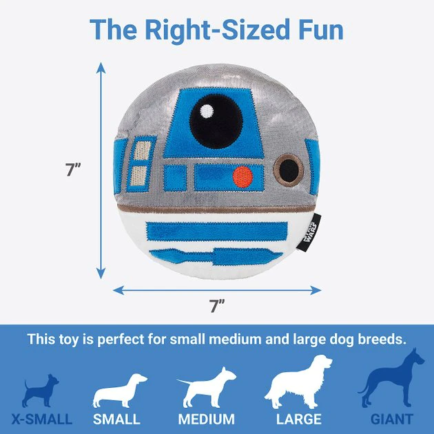 - Round R2-D2 plush toy is designed for every pup’s whim, whether it’s time to play or nap.