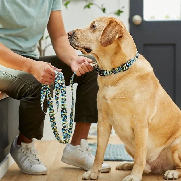 Your cosmic canine will want to strut his stuff with this STAR WARS STORMTROOPER Collar, LG – Neck: 18 – 26-in, Width: 1-in + Dog Leash, LG – Length: 6-ft, Width: 1-in bundle! The collar is made with durable, high-quality polyester that has an Ultra-Weld seal. It’s strength-tested to withstand up to seven times the maximum recommended weight for each size. Putting it on your dog is easy with the plastic rounded edge buckle, plus the nickel-coated D-ring makes it simple to snap a leash on and get going. The matching Dog Leash is designed with polyester webbing for everyday use, plus the easy-to-use, nickel-coated bolt snap securely attaches to the collar to help keep your sidekick close by.