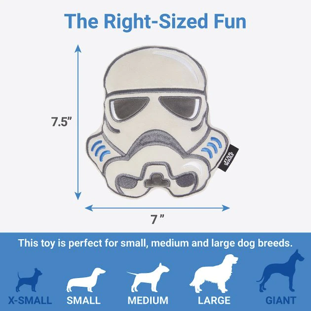 This plushie pal is basically an all-around blast for a Star Wars™ superfan! It has everything a dog loves in a toy: a soft cover that’s ultra-cuddly and easy on their mouth, plush stuffing that they love to squish and cuddle up to, and of course a squeaker inside for lots of loud fun that pups just can’t get enough of. Whether it’s about time for some interactive fun, like a game of fetch or catch, or your pup just needs a cuddle buddy, this pup-approved plush modeled after every Star Wars fan’s favorite, classic baddie is up for it—and available only at Chewy.