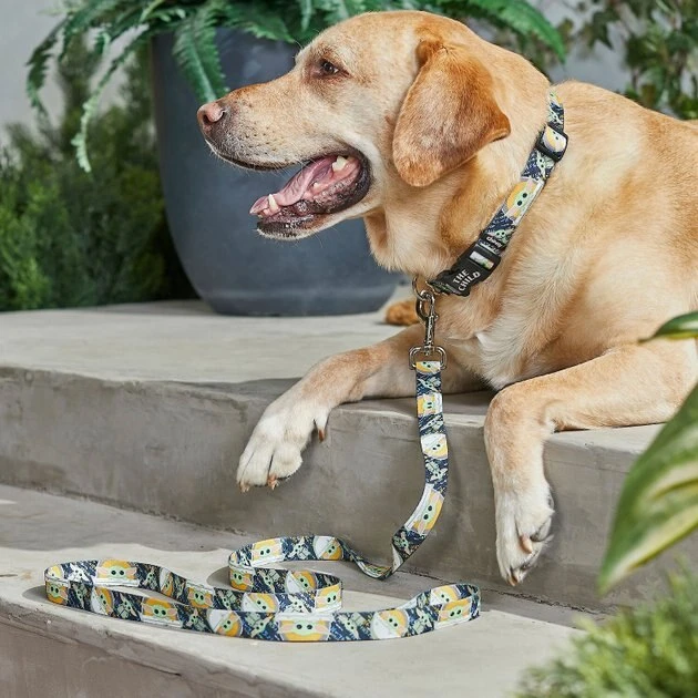 Prepare your pup for intergalactic adventure with this STAR WARS THE MANDALORIAN’S THE CHILD Dog Harness, XS – Girth: 12 – 18-in, Width: 3/8-in + Dog Leash, SM – Length: 6-ft, Width: 5/8-in bundle! The harness is designed with a durable, high-quality polyester material and the adjustable sizing makes it easy to customize your pup’s most comfy fit. When you’re ready to embark on a fun adventure, snap your dog’s leash on to the convenient D-rings. The leash is designed with polyester webbing for daily use, plus the easy-to-use, nickel-coated bolt snap securely attaches to the harness to help keep your BFF close by! The pattern on both the harness and the leash is inspired by The Child, affectionately known as Baby Yoda, from The Mandalorian, adding cosmic cuteness to your pup’s everyday adventures.