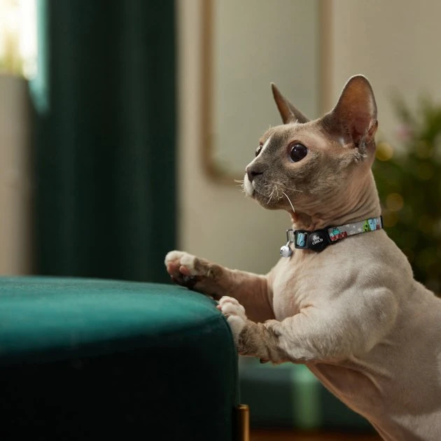 This collar is made with high-quality polyester webbing that’s perfect for everyday use, indoor or outdoor. For cats 8 lbs. and over.