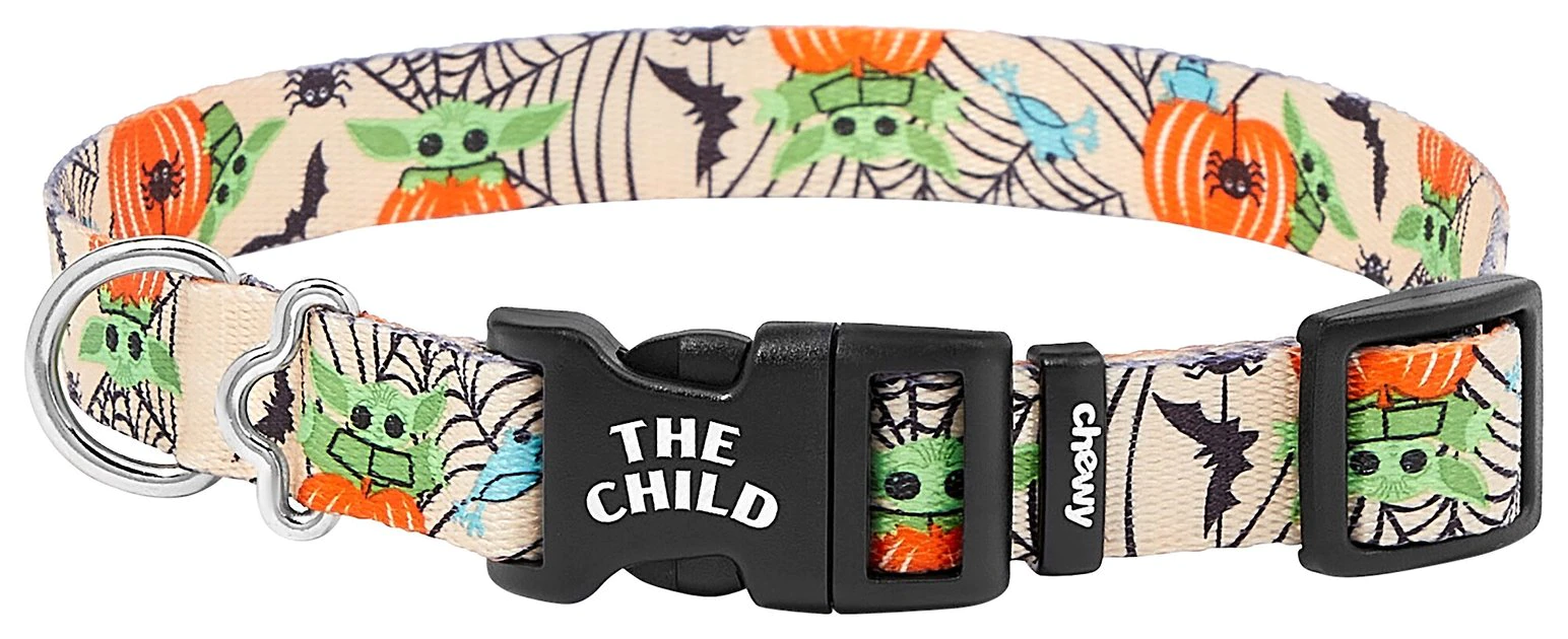 Dress up your dog for Halloween with this STAR WARS The Mandalorian The Child Pumpkin Dog Collar, only available at Chewy. Now your pup can show off their love for The Mandalorian everyday with this cute and comfy combination. Made with durable, high-quality polyester that has an Ultra-Weld seal, it’s strength-tested to withstand up to seven times the maximum recommended weight for each size. Putting it on your dog is easy with the plastic rounded edge buckle, plus the nickel-coated D-ring makes it simple to snap a leash on and get going. They come in different sizes you can adjust for a custom fit and a separate ring to attach an ID tag. Grab the matching leash to complete this Halloween look.