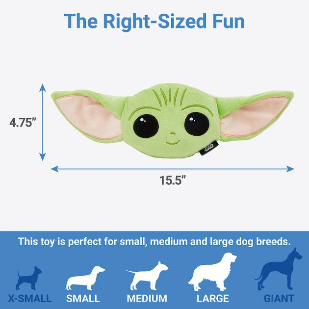 Modeled after The Child—affectionately known as Baby Yoda by fans of The Mandalorian™ all over the world—this is positively the cutest plushie in the galaxy. This round plush toy, available only at Chewy, has a soft cover, plush stuffing, a squeaker inside and extra crinkle paper in his ears to remind your pup that play is The Way. Whether it’s time for some fun and games like fetch or catch, or your pup just needs a good cuddle buddy, The Child is just the bounty of snuggly fun your dog has been waiting for!