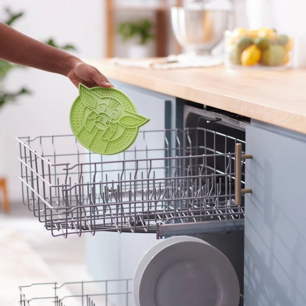 Give your Star Wars: The Mandalorian™ fan a new way to treat with this dog and cat treat lick mat, available only at Chewy! This is a fun way to treat or distract your pet when needed, like when it’s time for a little grooming session. Just spread a treat such as peanut butter over the textured mat, featuring Grogu, and let your bestie have at it. It’s dishwasher safe when they’re done licking away all the tasty treats, and there’s a matching food mat available to complete your pet’s dinnerware look.