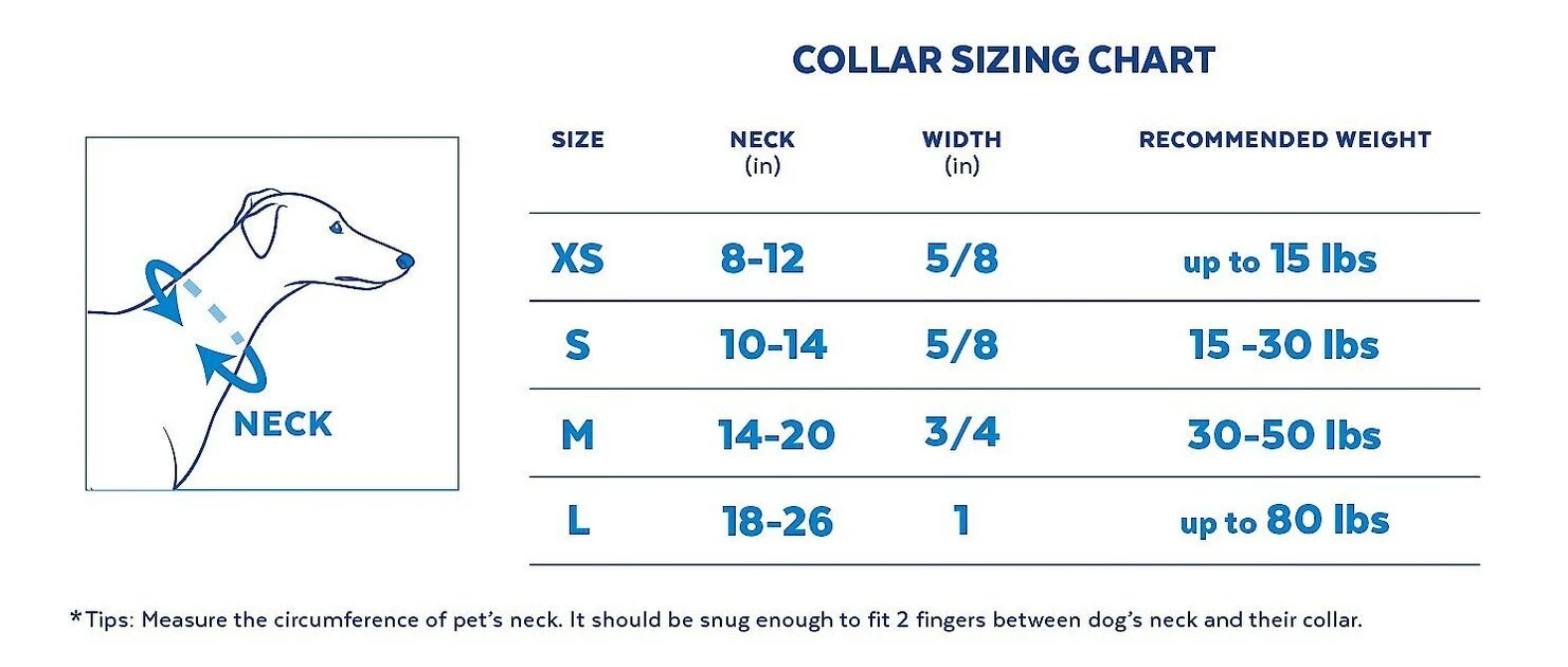 | Size | Neck Size | Collar Width | Recommended Pet Weight |