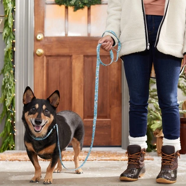 Celebrate the holiday season and your love for Star Wars: The Mandalorian™ with this leash featuring The Child—affectionately known as Baby Yoda—found only at Chewy! This cute pattern with Grogu building snowmen adds a touch of festive, fan-approved style to your furry friend’s everyday walks. It’s designed with polyester webbing for daily use, plus the easy-to-use, nickel-coated bolt snap securely attaches to any collar or harness to help keep your BFF close by. Grab the matching collar and harness to complete this Star Wars: The Mandalorian walkwear set, only at Chewy.