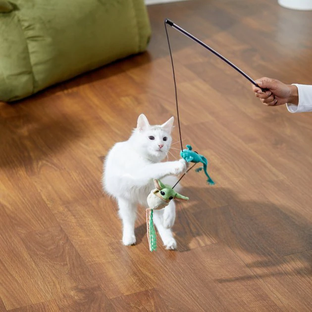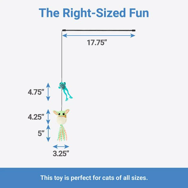 Introducing your kitty’s new best buddy—a Grogu plushie, oh, and a cute leaping frog! This plush, bouncy duo is ready to bring on the fun for your feline fan. No bored cats on this side of the galaxy. Just wave the wand around and watch your pal leap for the cutest bounty ever. Plus, there’s catnip to really get your kitty engaged in all the games. Available only at Chewy.