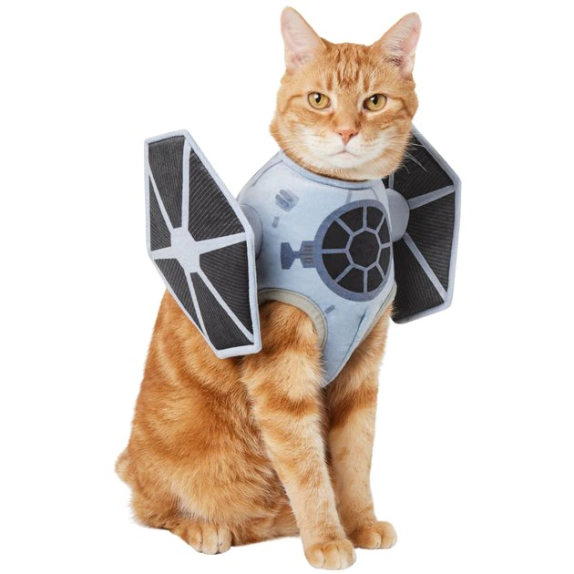 Your pet will be ready to rally for the Empire with this out-of-this-world costume, available only at Chewy. Designed to look like the iconic TIE (Twin Ion Engine) fighter ships from the Imperial fleet in STAR WARS™, this epic costume transforms your dog or cat for a Halloween night of intergalactic fun. Lasers not included.
